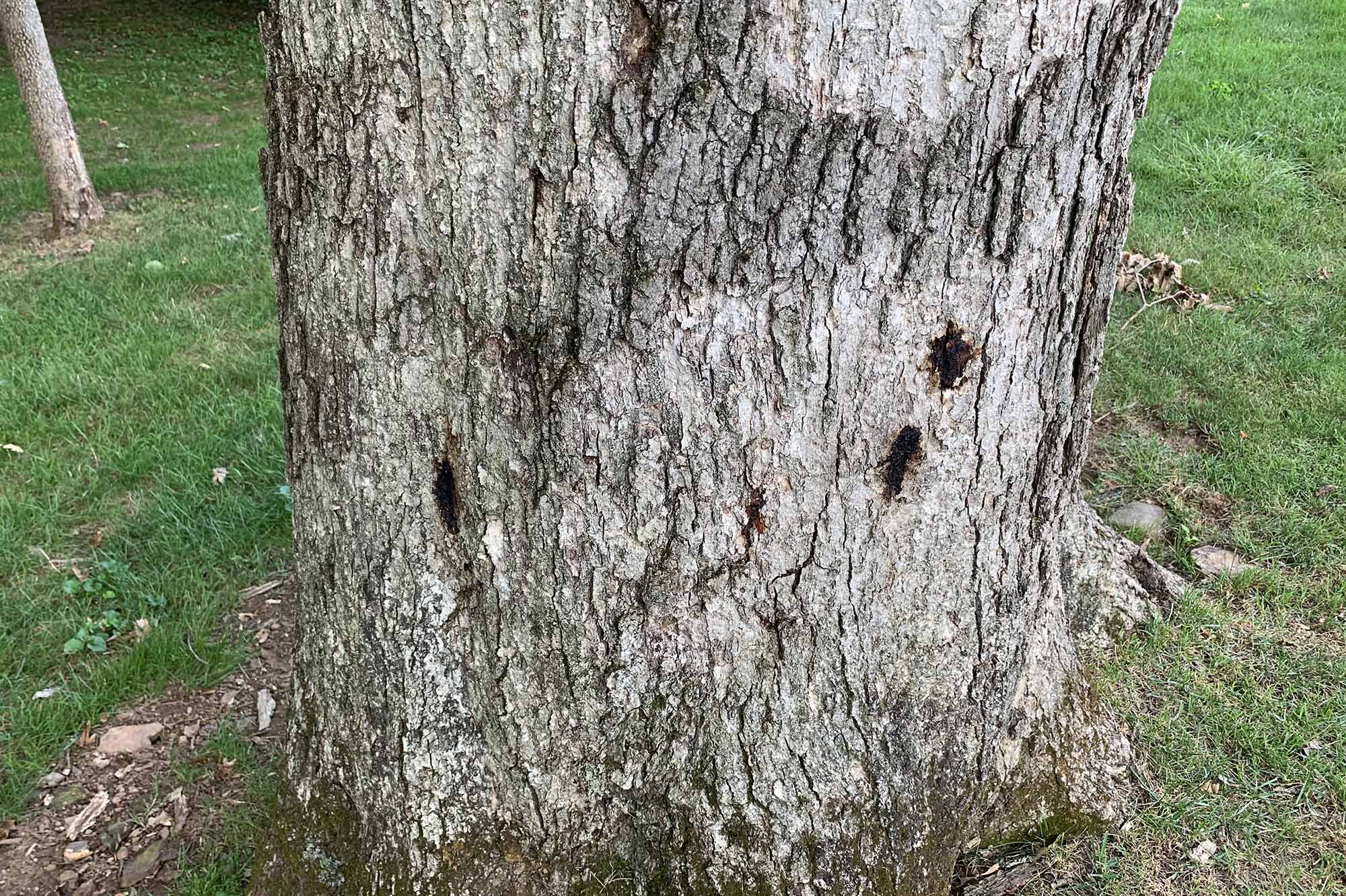 The organism can live in the soil. When a tree is stressed, it moves up onto the bark. The dark spots that look like bleeding are why this disease is called "Bleeding Canker."